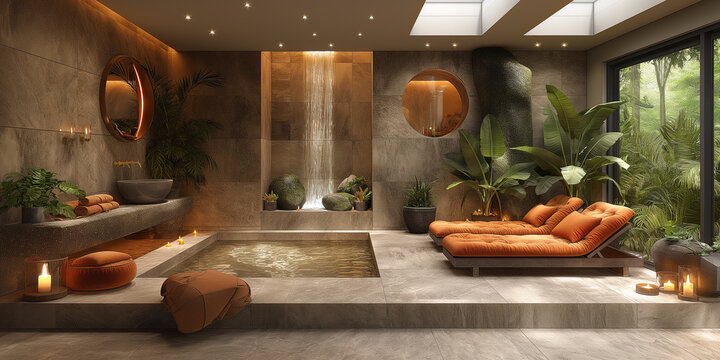 a modern living room with a large window